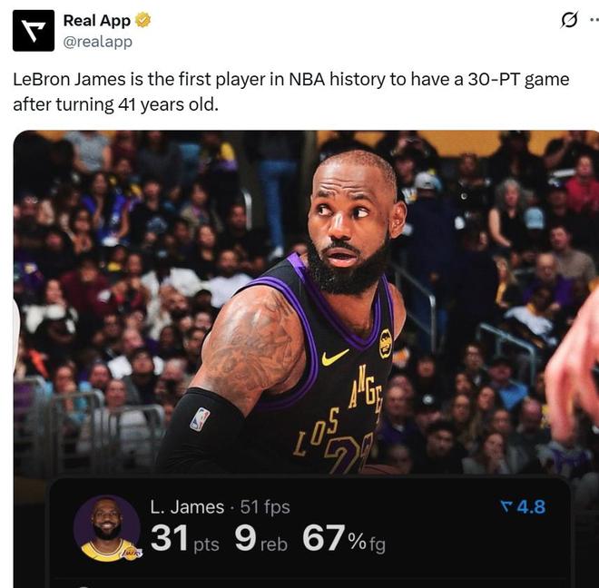 詹姆斯第四节4投全中!41岁还能31分!带队赢球!